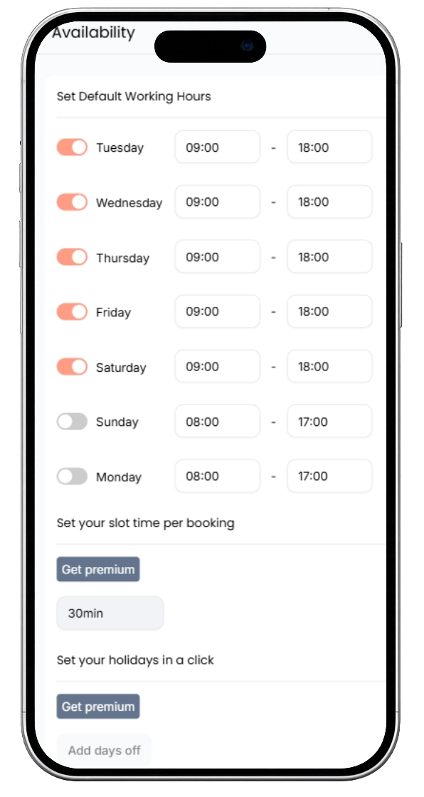 Oui, vous pouvez définir vos horaires, bloquer des créneaux et gérer votre planning facilement.